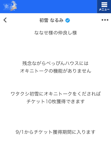 妻の友人 初雪なるみ様にオキニトークをして、チケットをたくさん獲得して欲しいです❤️